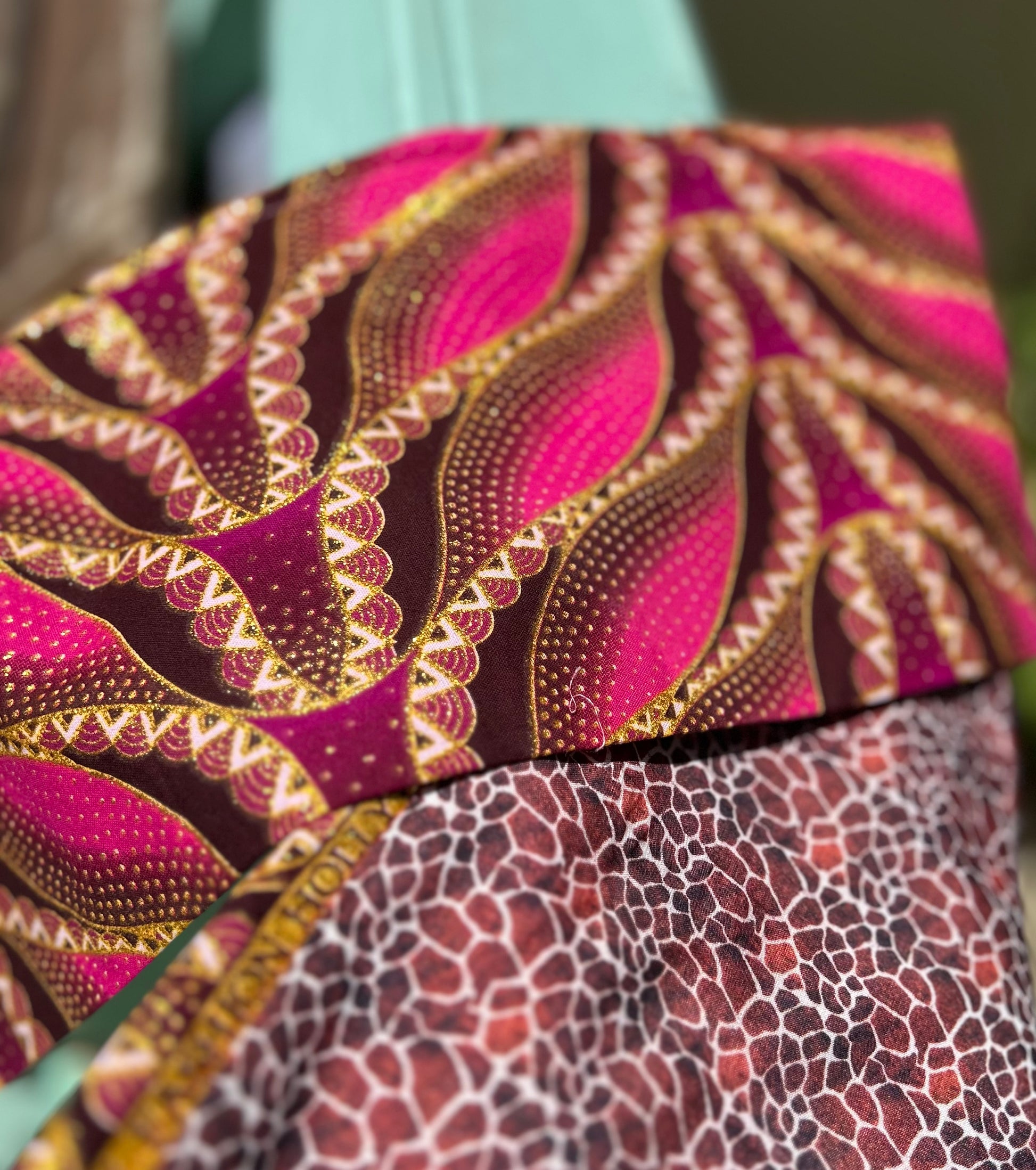 Mixing wax with other materials, like denim or more classical fabric for example , is like blending tradition with modernity. It creates depth, contrast, and unique pieces that catch the eye. Wax is my textile language, my way of playing with creativity and offering accessories that stand out.