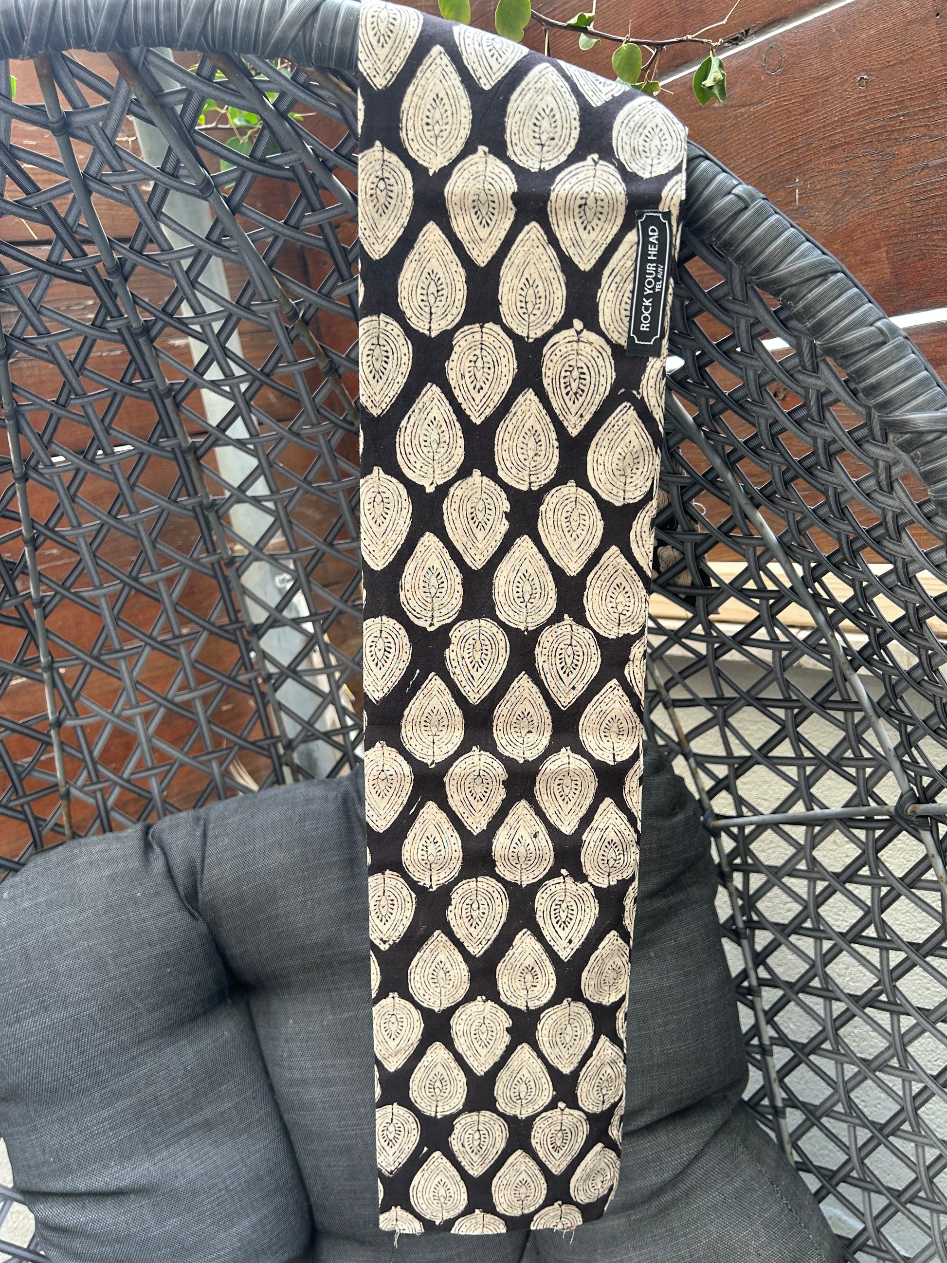 Apportez une touche bohème et élégante à votre look avec ce HEADBAND FLEXIBLE 100% coton, au superbe motif gouttes noir et beige, exclusif à Rock Your Head.