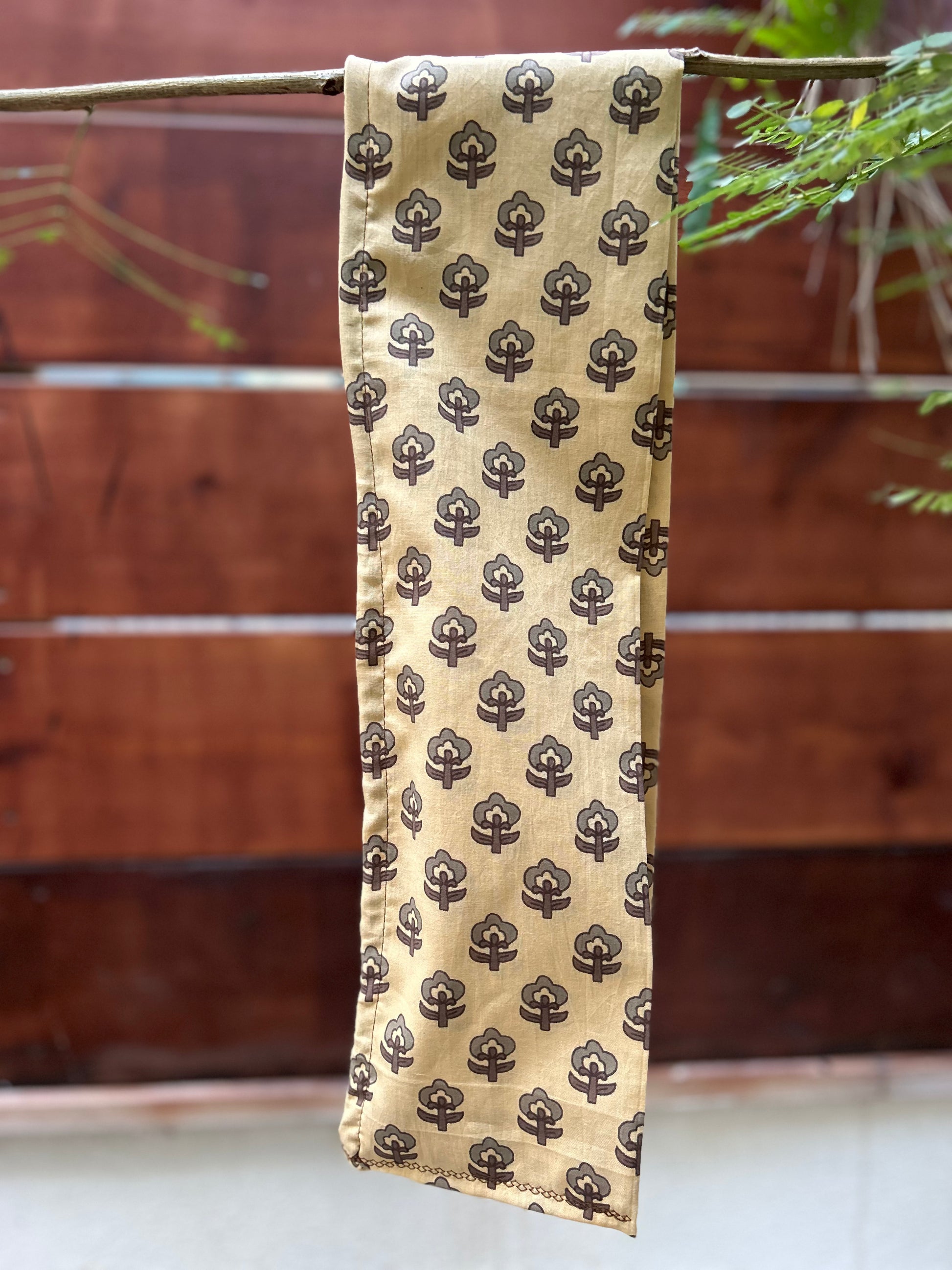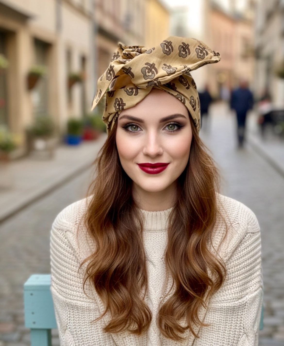 Confectionné dans un tissu souple 100% coton ,aux nuances sable et chocolat, ce headband arbore un motif délicat qui apporte une touche bohème-chic à toutes vos tenues. Grâce à sa longueur généreuse, il se noue au gré de vos envies : en turban sophistiqué, en bandeau classique.