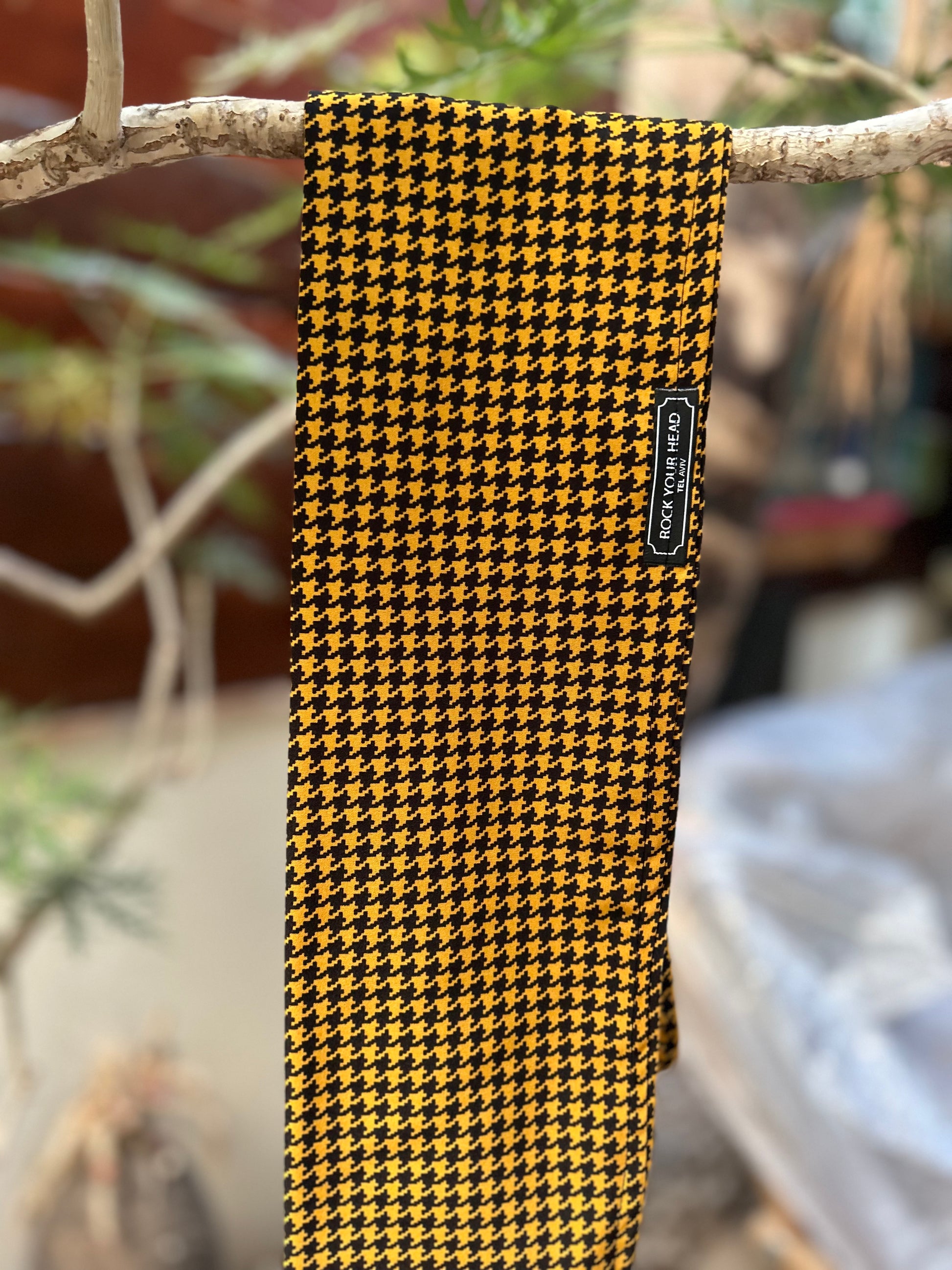 Headband flexible motif pied-de-poule jaune moutarde & noir – Rock Your Head