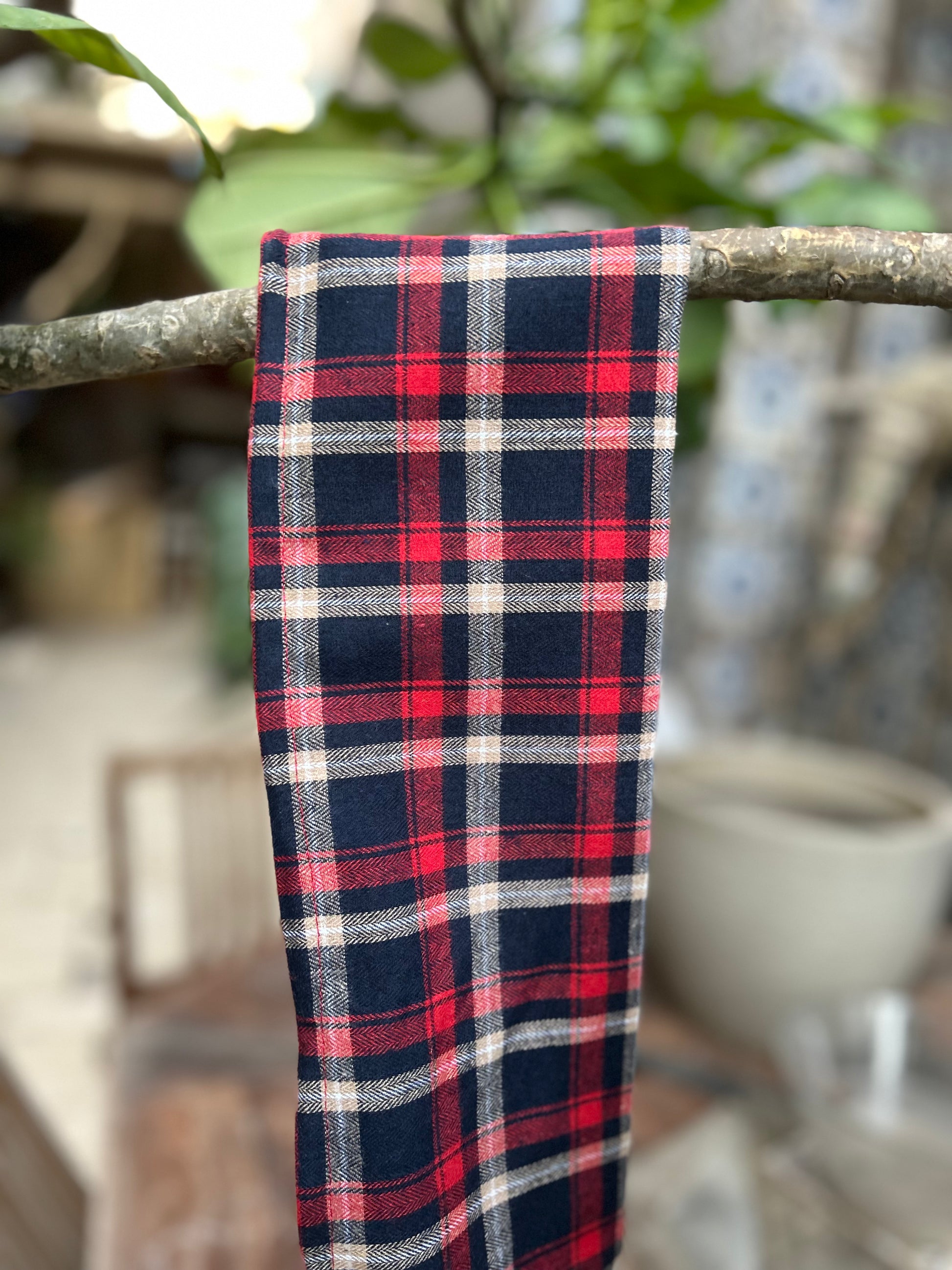 Its iconic plaid (or tartan) pattern—woven with vibrant cherry red, deep navy blue, and soft beige checks—is guaranteed to add a cozy and decidedly on-trend touch.