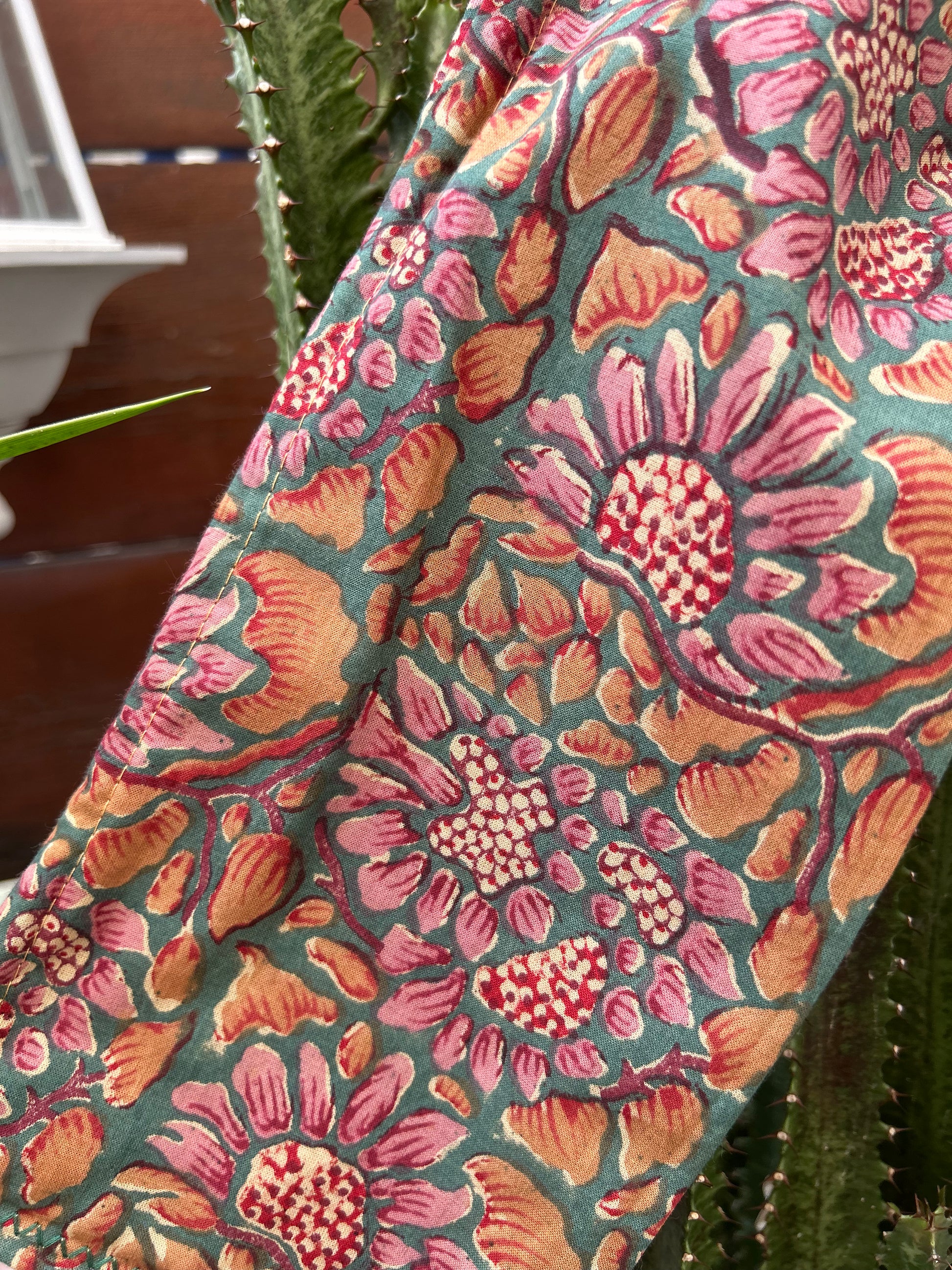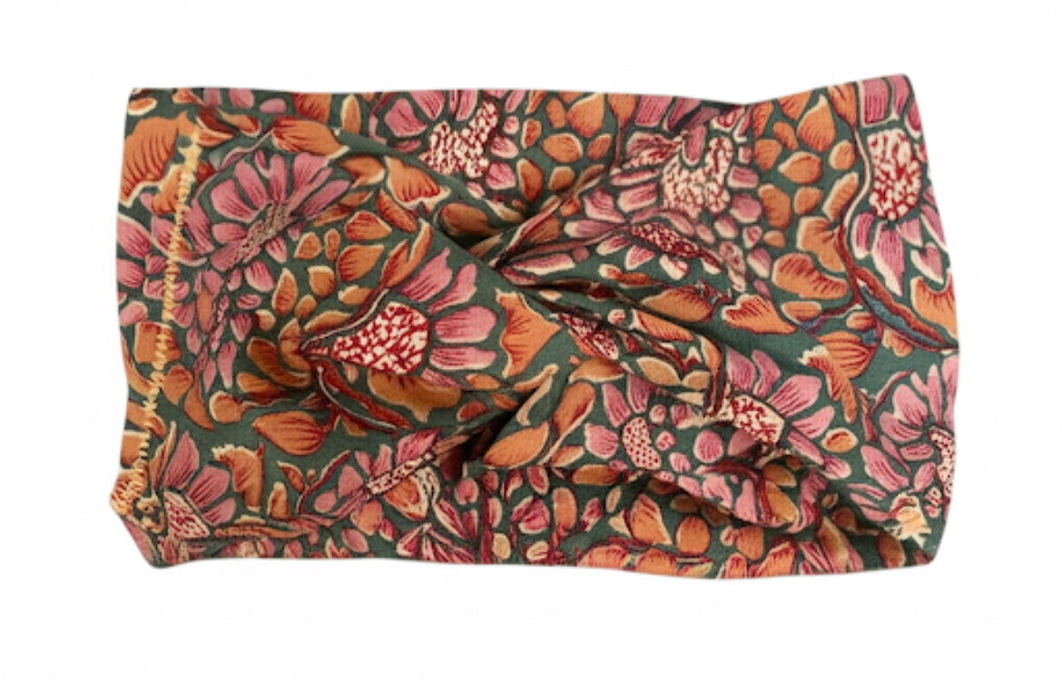 💯 coton , bleu - vert, bois de rose ,camel, orné d’un magnifique motif floral vintage, idéal pour apporter une touche bohème et romantique à votre tenue.