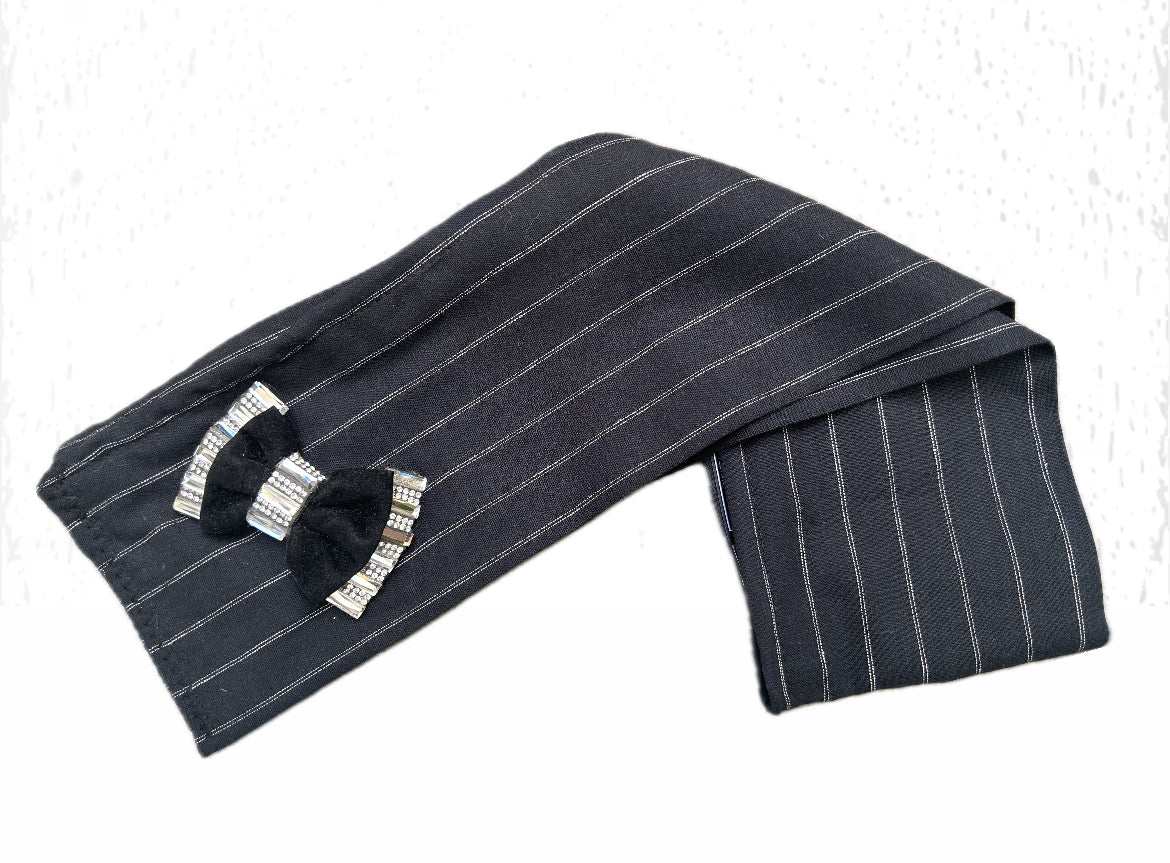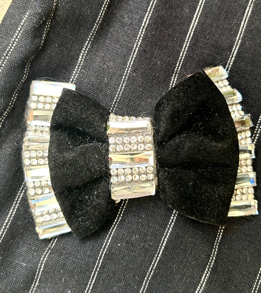 Noir , rayures blanches customisé d’un élégant noeud en velours avec détails strass –