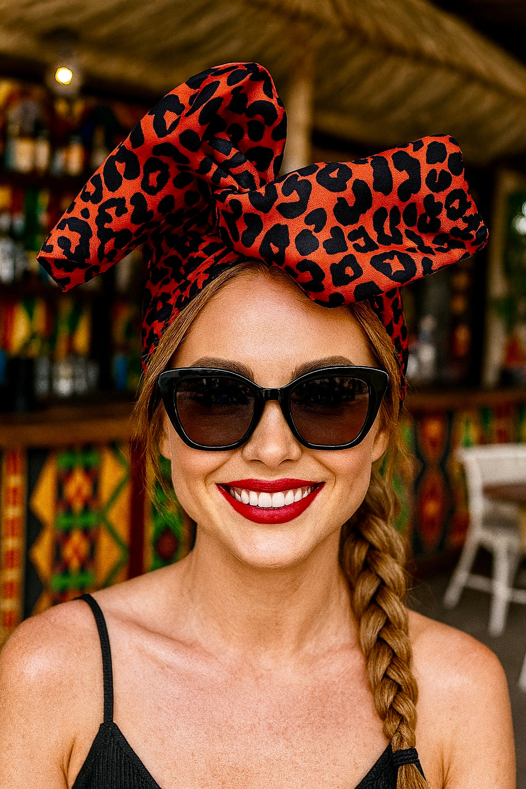 Ce turban en coton orange et noir,imprimé léopard est l’accessoire parfait pour apporter une touche sauvage et sophistiquée à votre look.