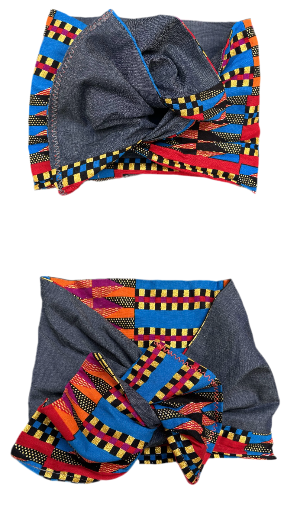Ajoutez une touche unique et colorée à votre tenue avec ce flexband reversible wax / jean.Confortable et stylé, il allie l’authenticité des tissus africains à la robustesse du denim pour un look à la fois tendance et pratique.